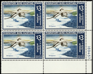 RW34, Mint NH $3 XF Duck Plate Block of Four Stamps CV $550.00 - Stuart Katz