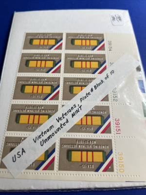 Scott #1802 MNH OG 1980 15c Vietnam Veterans Plate#Block of 10.