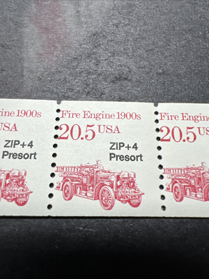 Scott#2264-Transporatation Coil 20.5 cent Fire Engine Coil Strip of 4 MNH-US. Shipped with USPS Ground Advantage.