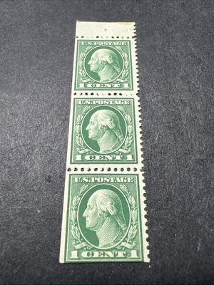 Scott#498e-1917 Washington MNH with original gum-1c green-plate strip of 3-US. Shipped with USPS Ground Advantage.