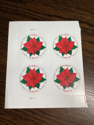 Scott # 5311 - Poinsettia Global Forever 2018-MNH-Plate Block Of 4-US.