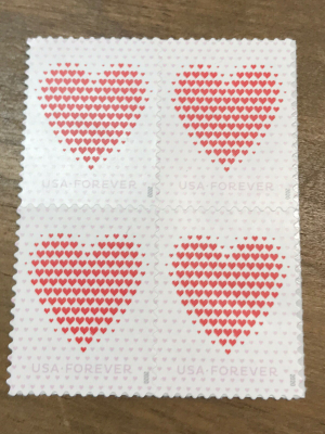 Scott # 5431 Block Of 4- MNH, Made Of Hearts (2020). Shipped with USPS First Class Package.