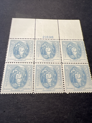 Scott # 796 Virginia Dare-5c Plate # Block Of 6 Stamps-MNH-1937-US. Shipped with USPS Ground Advantage.