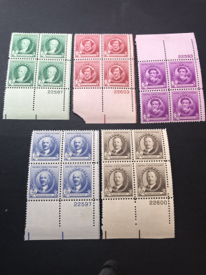 Scott# 884-88 American Artists 1940- 5 Plate Blocks 20 Stamps MVLHOG