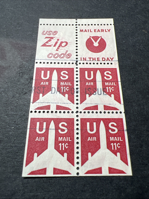 Scott#C78a, Jet Airliner, Booklet Block of (4) 1971 11¢ FDI-Airmail Stamps-US. Shipped with USPS Ground Advantage.