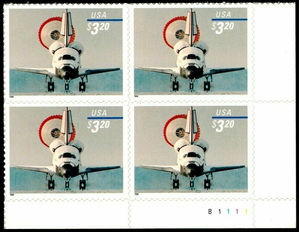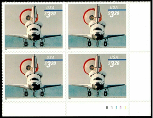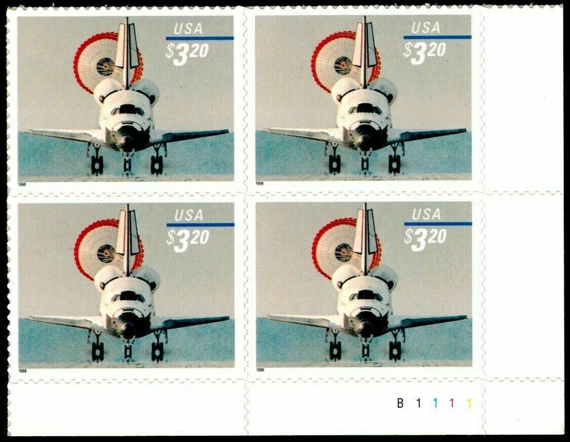Space Shuttle Landing Priority Mail $3.20 Plate Block of 4 Stamps Scott 3261