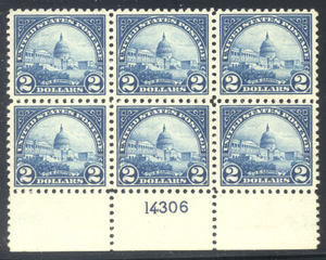 Scott #572: 1922 $2 Capitol Centering & Condition: Mint. Fresh. Sparkling color. VF/XF and CHOICE Plate Block. Reverse (Gum Side): Original gum. Never Hinged. Faults / Imperfections: None The item pictured is the actual item you are purchasing, unless otherwise noted. I also offer an interest-free layaway plan. Ask me about it!" All items will be mailed a day or two after payment is received. --------------------------------------------------------------------------------