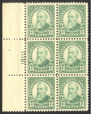 Scott #622: 1926 13c Harrison Centering & Condition: Mint. Fresh. Incredibly well centered Plate Block. Extremely Fine and CHOICE! Reverse (Gum Side): Original gum. Never Hinged. Faults / Imperfections: None The item pictured is the actual item you are purchasing, unless otherwise noted. I also offer an interest-free layaway plan. Ask me about it!" All items will be mailed a day or two after payment is received. -------------------------------------------------------------------------------- Please click any of the following to read: |