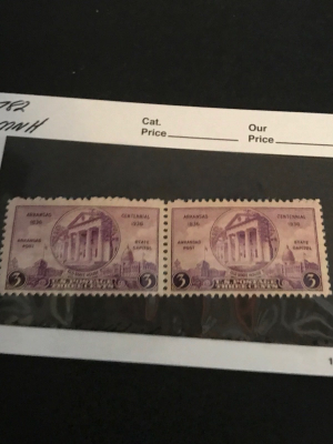 US Scott# 782 Arkansas Post Office 1936 MNH Line Pair