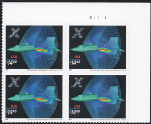 X-Planes $14.40 Express Mail Plate Block of 4 Postage Stamps Scott 4019