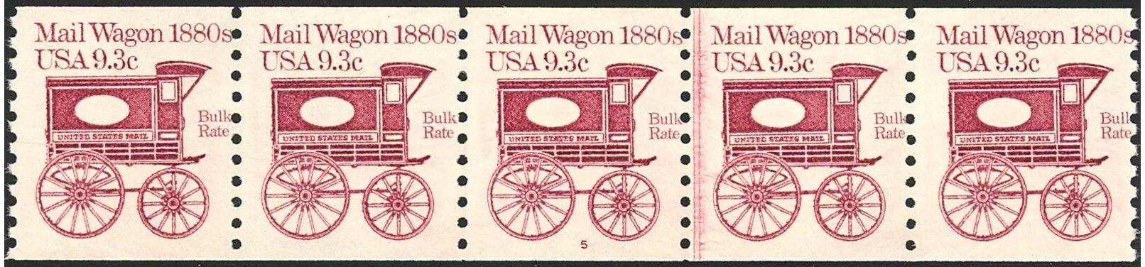 RARE PL# 5 COIL STRIP OF 5 - NEVER HINGED
