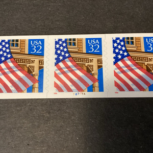 Scott#2913,STRIP OF 3 PNC #11111or33333 OF FLAG OVER PORCH, LOW GLOSS GUM, MNH