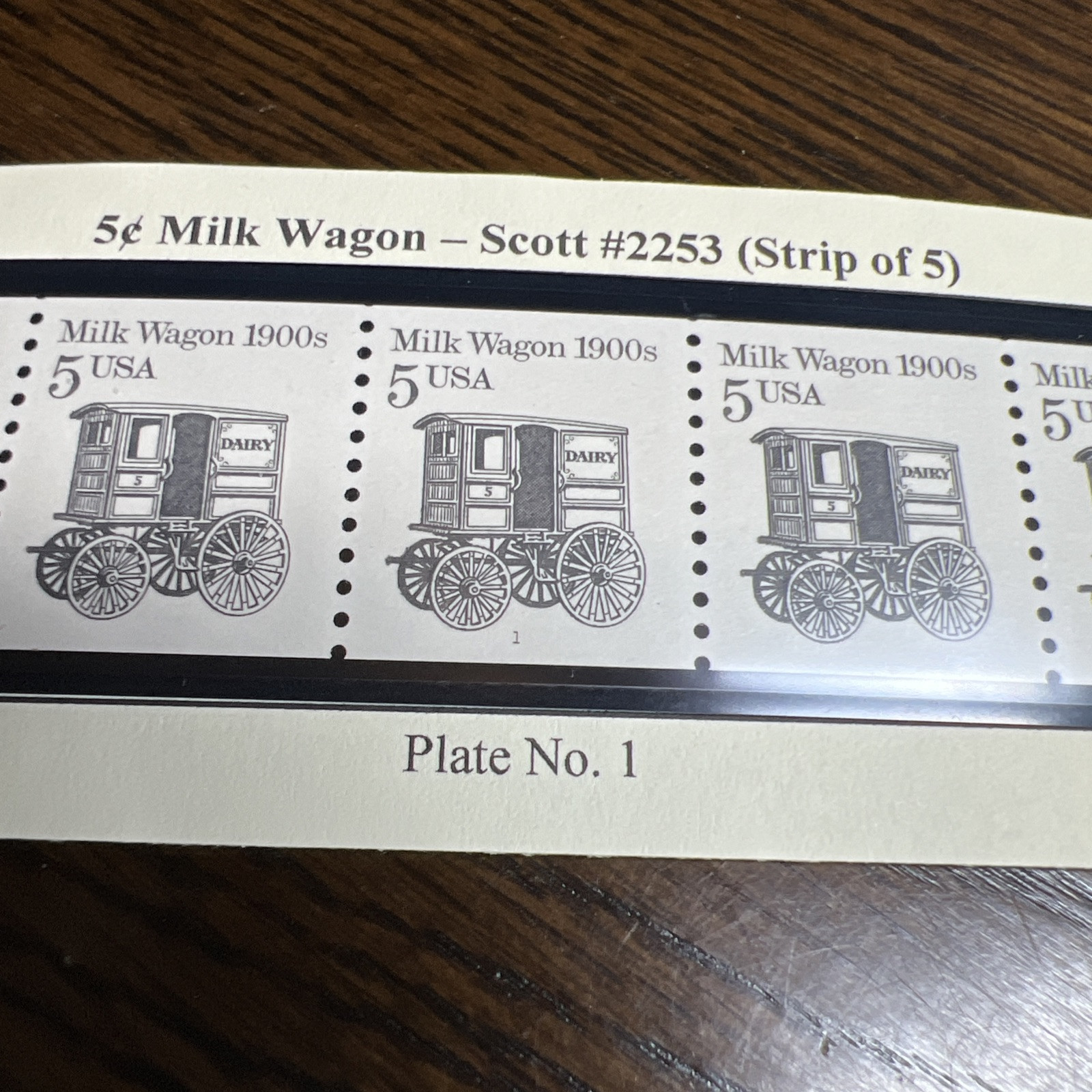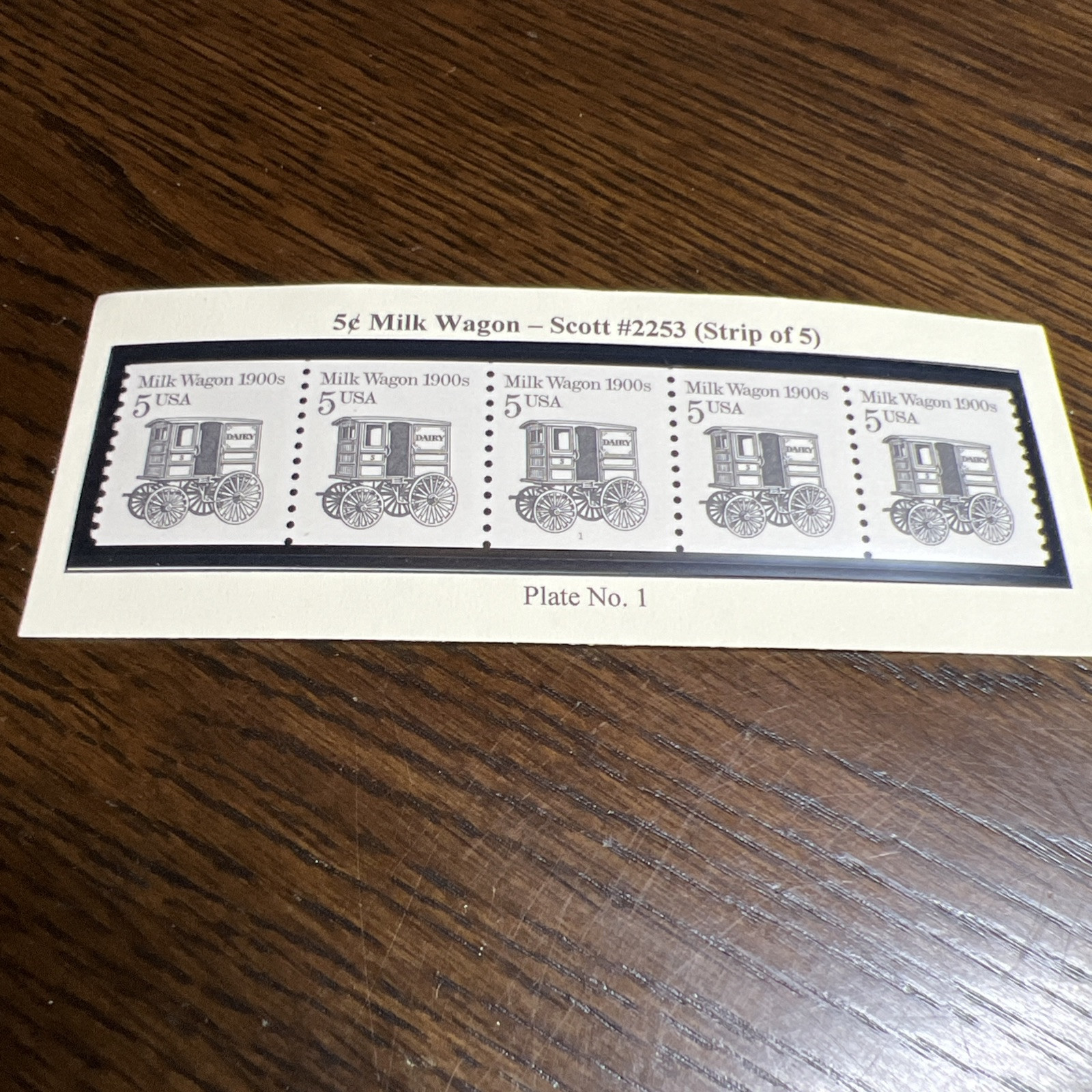 Scott#2253– Milk Wagon-5c PNC 5 Plate # 1 MNH-US. Shipped with USPS Ground Advantage.