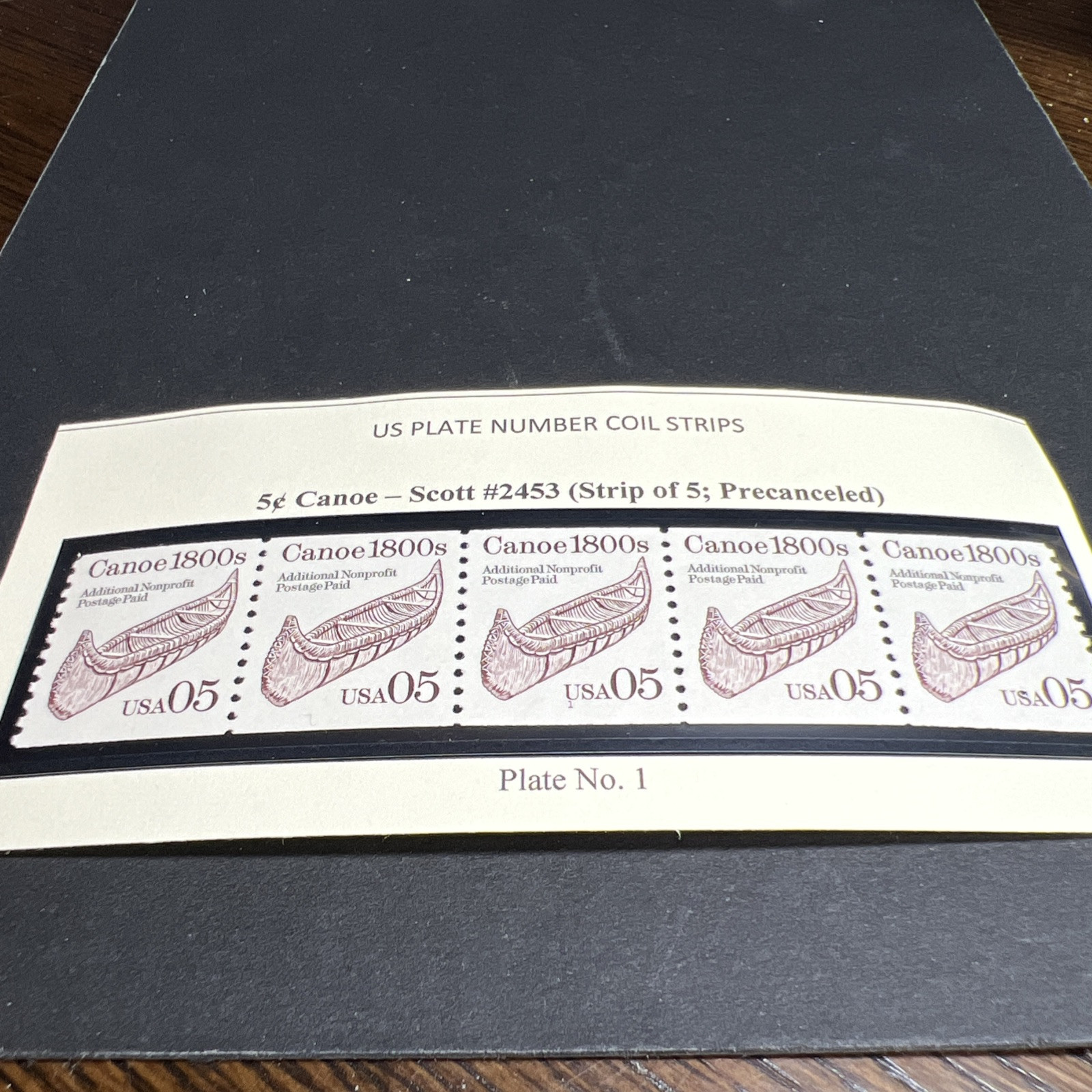 Scott# 2453 - Plate #1 PNC5 Canoe 1800s MNH-US. Shipped with USPS Ground Advantage.