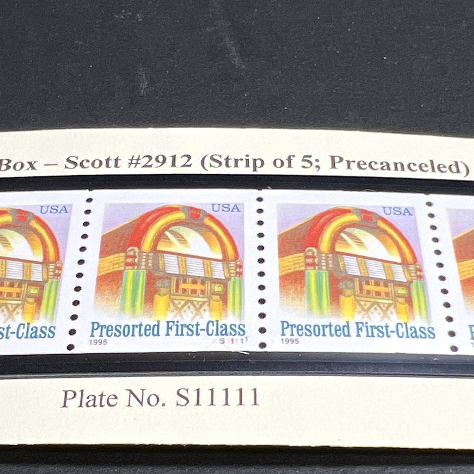 Scott#2912-1995 25 cent Juke Box Plate number coil Strip of 5-#S11111-MNH-US. Shipped with USPS Ground Advantage.