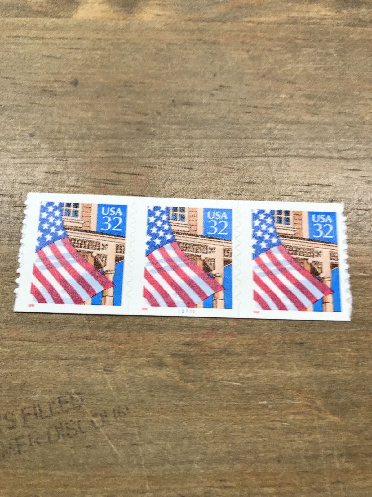Scott # 2915A, STRIP OF 3 PNC3 #99999,8””,4””,1””FLAG OVER PORCH, MNH. Shipped with USPS First Choice Of 1 Strip of 3 and plate#