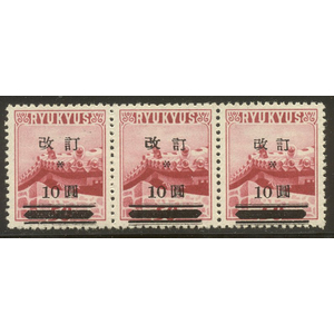 RYUKYU #16e Mint NH - 1952 107 on 50s, Strip of All Three Types
