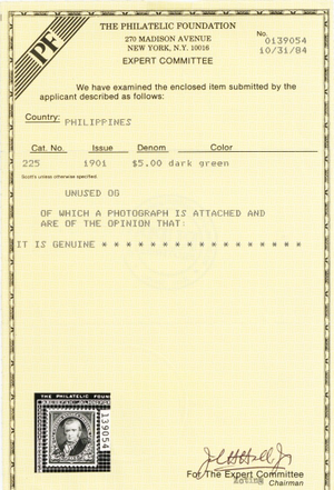 No refunds will be made after 60 days after the sale date unless extra time is granted. Due to the high cost of obtaining certificates we will only refund the cost of the stamp and not the cost of the certificate. For U.S. stamps only certificates from either APS, PSE or from the Philatelic Foundation are accepted, however "graded" certificates or "encased" items are not accepted.