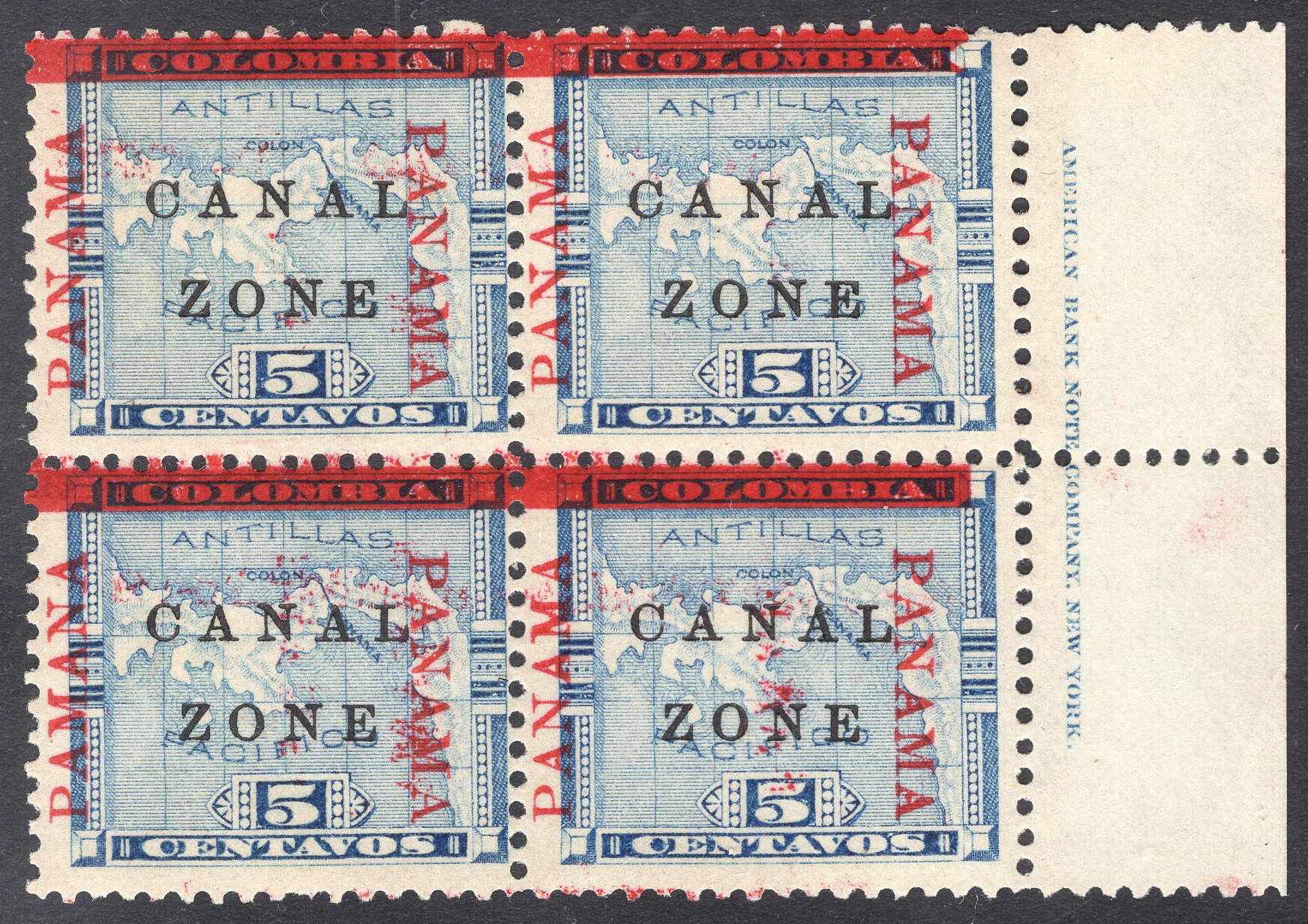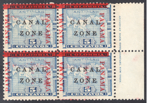 Canal Zone Scott 12. Block of 4. Unused. With Inscription.