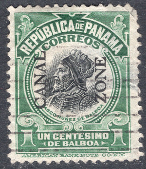 Canal Zone Scott 38. Used. Thinned. 2