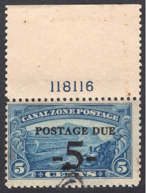 Canal Zone Scott J23. Mint. Never hinged. Plate number.