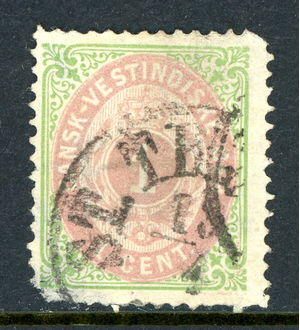 Danish West Indies 1874 DWI 1ยข Green & Red Brown Scott #5 VFU R131