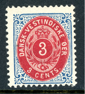 Danish West Indies 1874 DWI 3ยข Blue & Carmine Inverted Scott #6e Mint R168