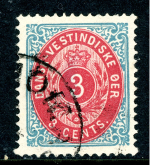 Danish West Indies 1874 DWI 3ยข Blue & Carmine Scott #6 VFU R134