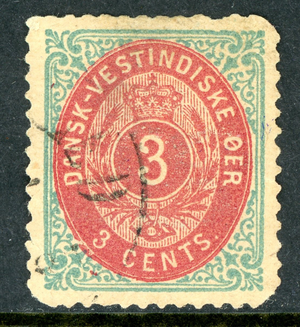 Danish West Indies 1874 DWI 3ยข Light Blue & Carmine Rose Scott #6a Mint R126
