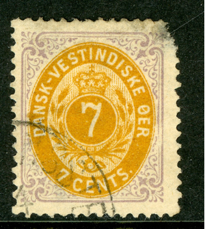 Danish West Indies 1874 DWI 7¢ Lilac & Orange Scott #9 VFU N63
