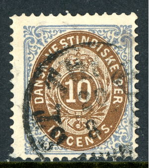Danish West Indies 1876 DWI 10ยข Blue & Brown Scott #10 VFU R141