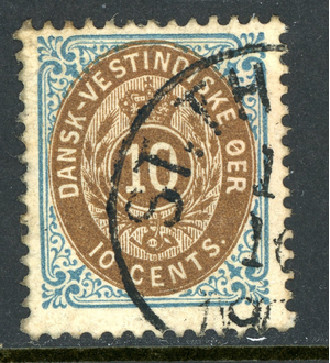Danish West Indies 1876 DWI 10¢ Blue & Brown Scott #10 VFU U627
