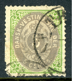 Danish West Indies 1876 DWI 3ยข Green & Gray Scott #8 VFU R128