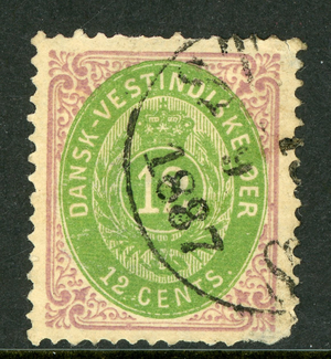 Danish West Indies 1877 DWI 1¢ Red Lilac & Yellow Green Scott #11 VFU N68