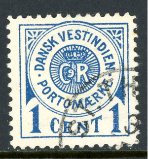 Danish West Indies 1902 DWI 1¢ Blue Scott #J1 VFU U639