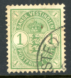 Danish West Indies 1903 DWI 1¢ Light Green Scott #21 VFU U628