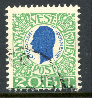 Danish West Indies 1905 DWI 20 Bit Green & Blue Scott #33 VFU U635