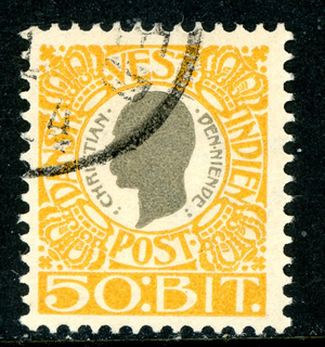 Danish West Indies 1905 DWI 50 Bit Yellow & Gray Scott #36 VFU U637