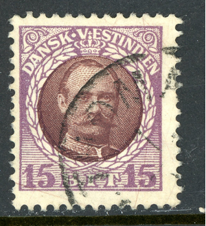 Danish West Indies 1908 DWI 15 Bit Violet & Brown Scott #45 VFU U643