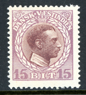 Danish West Indies 1915 DWI 15 Bit Lilac & Red Brown Scott #53 MNH U657
