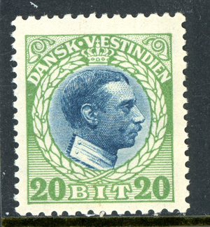 Danish West Indies 1915 DWI 20 Bit Green & Blue Scott #54 MNH U654