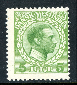 Danish West Indies 1915 DWI 5 Bit Green Scott #51 MNH U664
