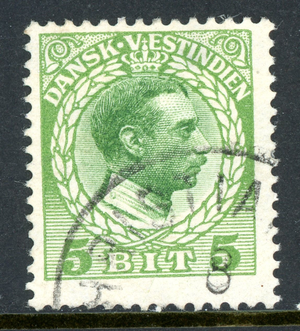 Danish West Indies 1915 DWI 5 Bit Green Scott #51 VFU U653