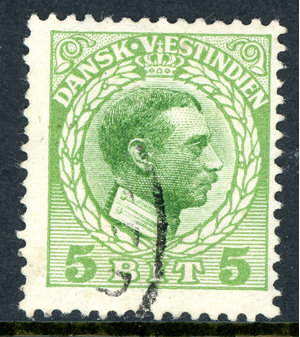 Danish West Indies 1915 DWI 5 Bit Green Scott #52 VFU R107