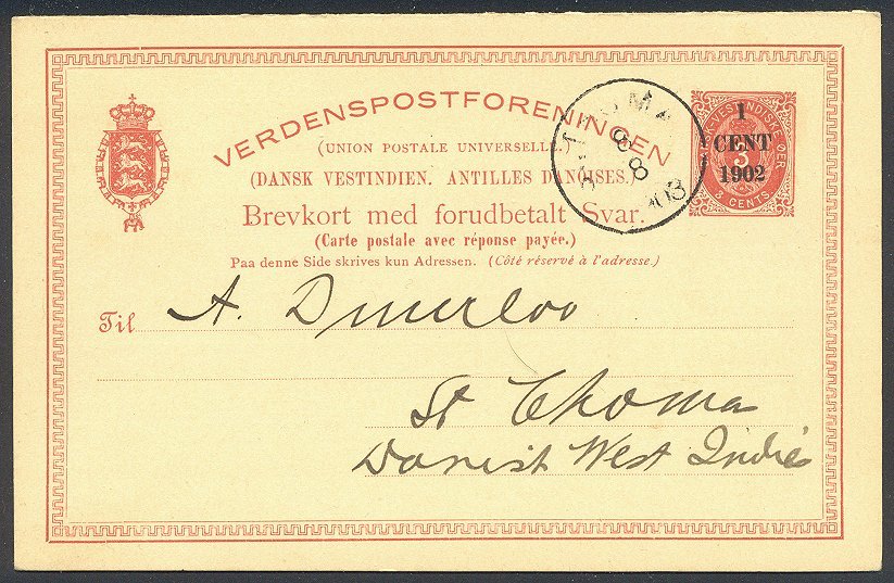 DANISH WEST INDIES #UY6 RARE Used - 1902 1c on 3c Red
