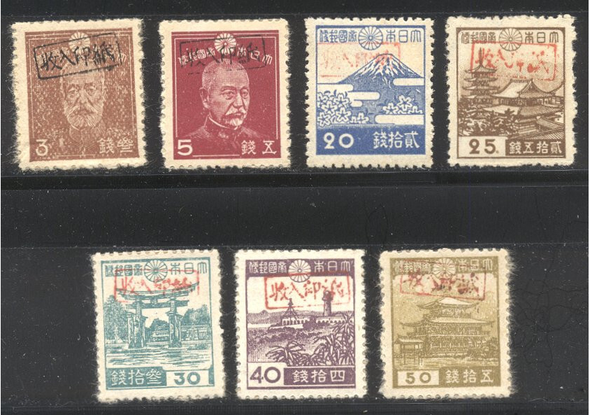 Scott #3XR1-7: 1948 Pictorials w/ Miyako Ovpt Centering & Condition: Mint. Fresh. Fine-Very Fine set. Most with handstamp. Reverse (Gum Side): Original gum. Most with interleave paper adhering.. Faults / Imperfections: None The item pictured is the actual item you are purchasing, unless otherwise noted. I also offer an interest-free layaway plan. Ask me about it!" All items will be mailed a day or two after payment is received. --------------------------------------------------------------------------------