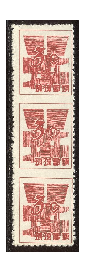 Scott #47c: 1958 3c Deep Red, Strip of 3 Imperf Horiz Centering & Condition: Unused. Fine and SCARCE Strip of 3. Reverse (Gum Side): Without gum as issued Faults / Imperfections: Light crease through bottom stamp. The item pictured is the actual item you are purchasing, unless otherwise noted. I also offer an interest-free layaway plan. Ask me about it!" All items will be mailed a day or two after payment is received. --------------------------------------------------------------------------------
