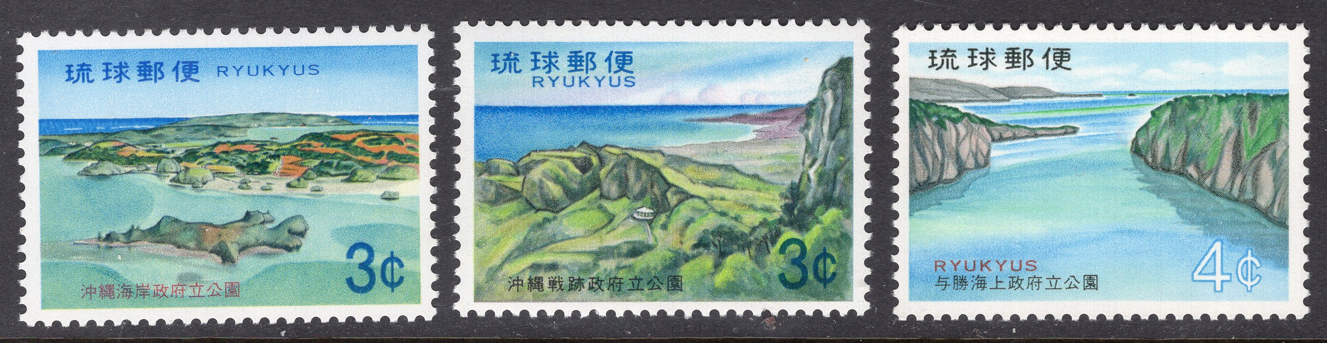 Ryukyu Islands Scott 217-219. Complete set. Mint. Never hinged.