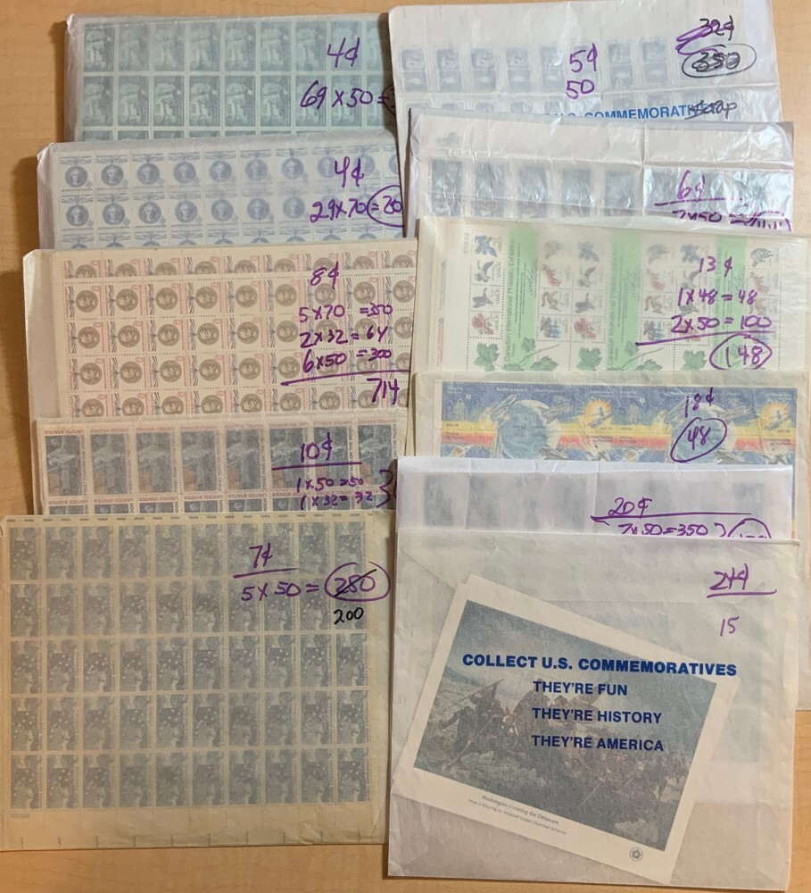 Postage Sheet Lot of 4¢-18¢ Stamps - FACE VALUE $497.94 - Stuart Katz