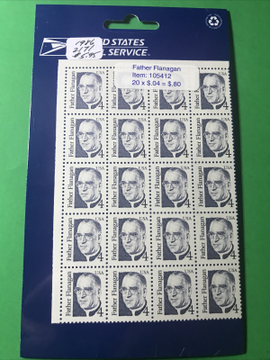 SCOTT# 2171 PANE OF 20 FATHER FLANAGAN STAMPS 4 CENTS FACE MNH 1986(NIP). Shipped with USPS First Class.